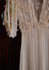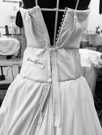 Junto ao vestido da noiva, bordamos uma etiqueta personalizada com o seu nome — um detalhe sutil que torna cada criação única e ainda mais especial, reforçando o cuidado e a exclusividade de cada peça.